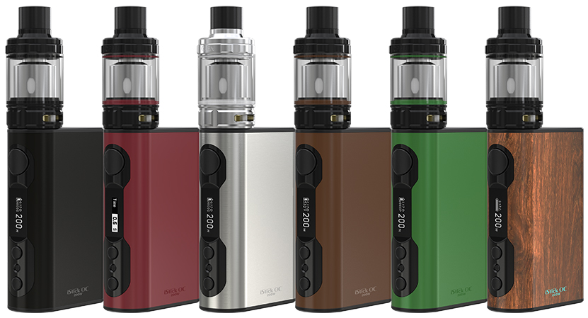 Eleaf iStick QC reprezentuje skupinu módu s integrovanou baterií. Eleaf se také snaží vytvářet nová barevná provedení, jako zde barva bordó a vojenská zelená.