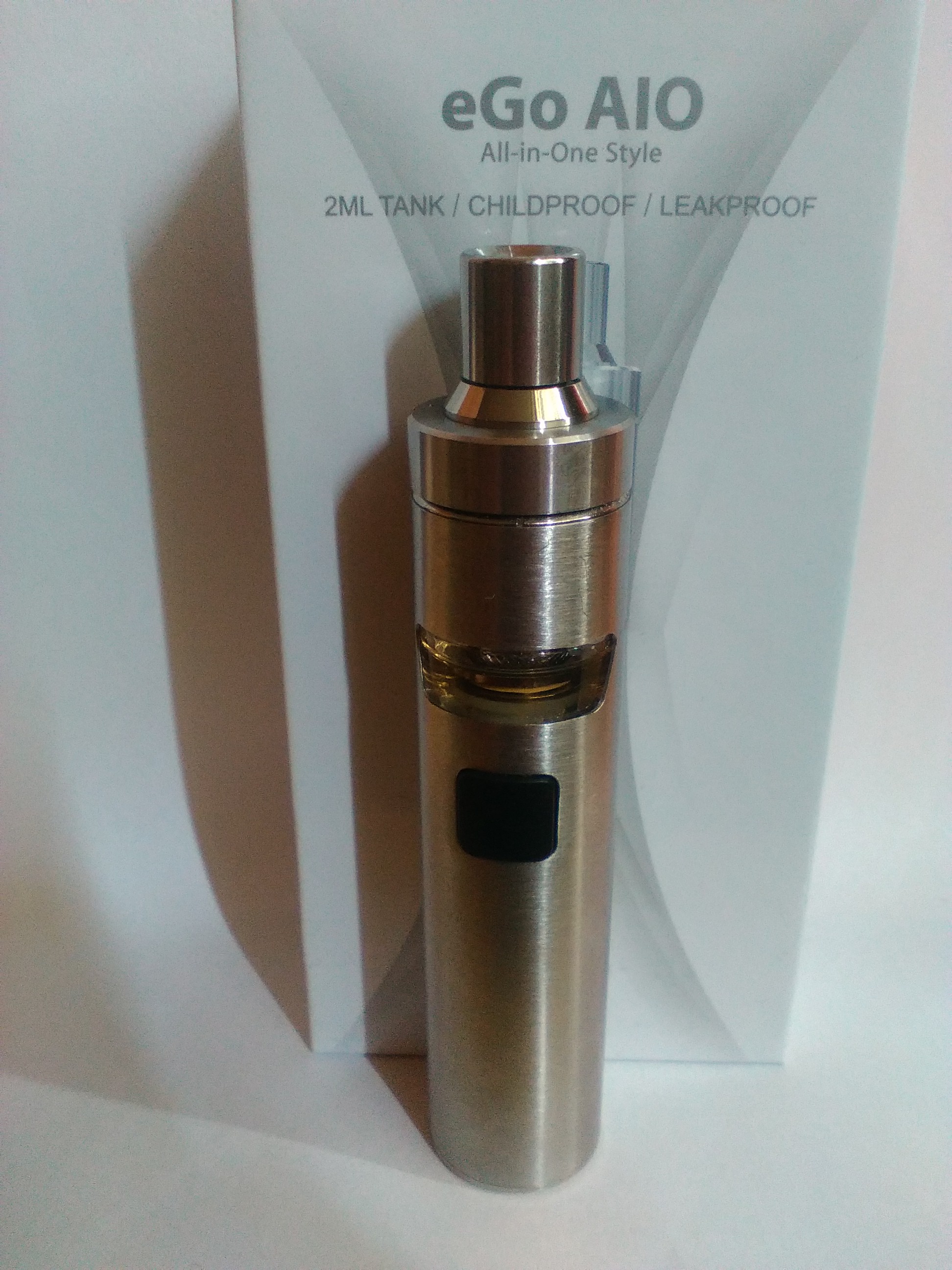 Elektornická cigareta typu „AIO“, určená k potahování ve stylu „pusa-plíce“.
